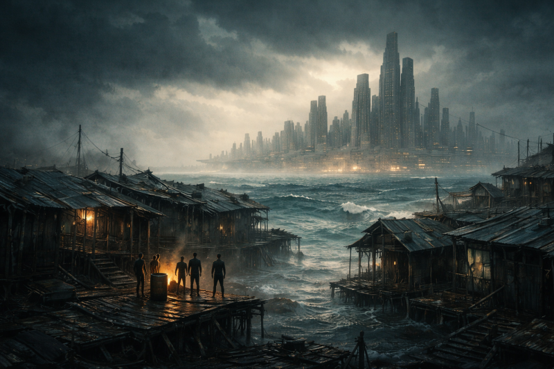 Während in den verwüsteten Küstengebieten Menschen um Wasser, Schutz und Hoffnung kämpfen, verteidigt Aequoris seine Grenzen mit immer größerer Härte. Jonas, ein loyaler Techniker der Stadt, beginnt zu zweifeln, als er das Leid der Küstenbewohner mit eigenen Augen sieht. Gemeinsam mit Mara, Tariq und der entschlossenen Elisa gerät er zwischen die Fronten eines Konflikts, der längst mehr ist als ein Kampf um Ressourcen.